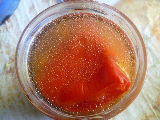 Рецепт рассчитан на 0,5 л баночку. Перец очистить от сердцевины, промыть, наколоть вилкой. Овощи очистить.