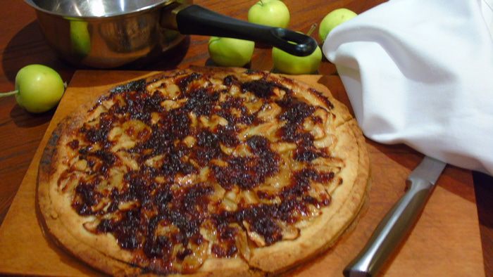 Не смотрите, что вид у пиццы не особо привлекательный, просто у меня закончился открытый абрикосовый джем, вот я и намазала густым сливовым)))))) а выставлять рецепт в начале и не думала, сфоткала так по быстрому, на всякий случай, но вкус просто потрясающий, я сама половину умяла))) вот все же и решила поделиться)))