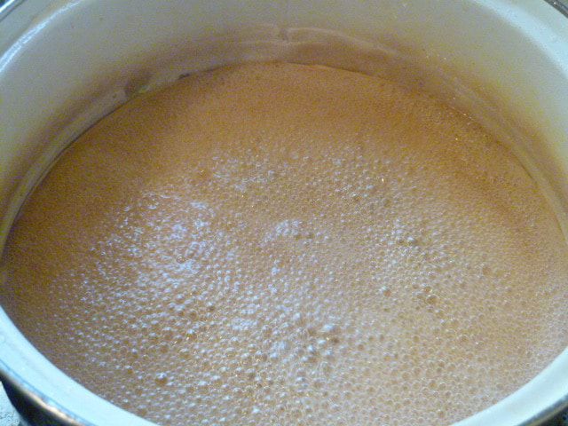 Когда начнет сильно пузырится, почти одна пена, значит уже готово.