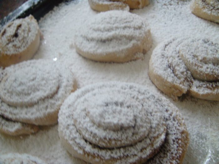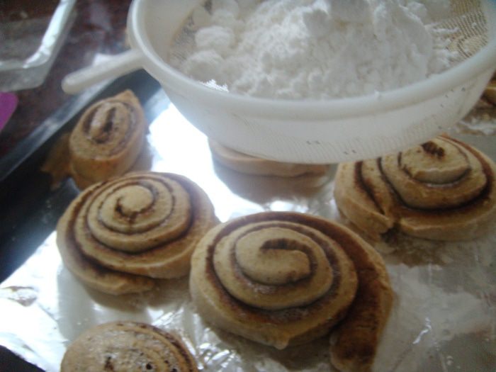 Готовые завитки присыпать щедро сахарной пудрой.