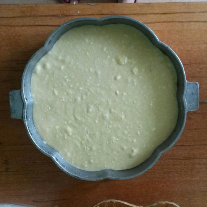 В смазанную маслом форму выливаем тесто. Оно должно получиться как очень густая сметана.