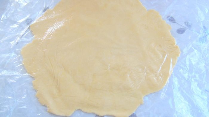 Достать тесто, раскатать, я для удобства раскатываю между двумя кусками пленки.