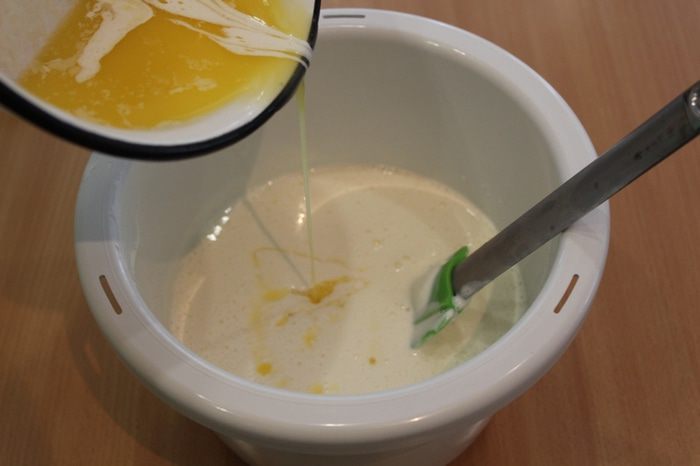 Сливочное масло растопить и аккуратно добавить вместе с йогуртом.