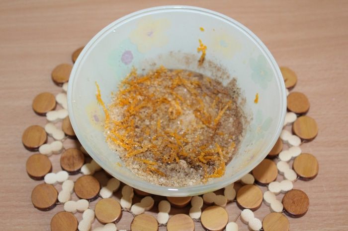 для пряной смеси: апельсиновую цедру одного апельсина смешать с коричневым сахаром и корицей.