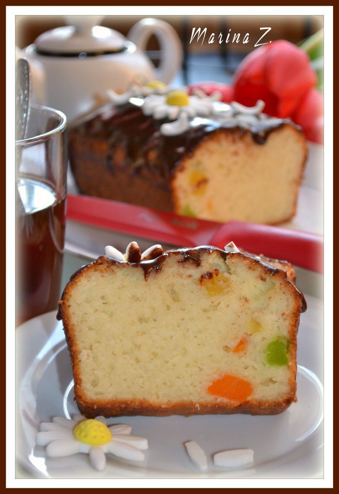 Цукаты промыть, обсушить, добавить столовую ложку муки, обваливая цукаты в ней. Добавить в тесто. перемешать.