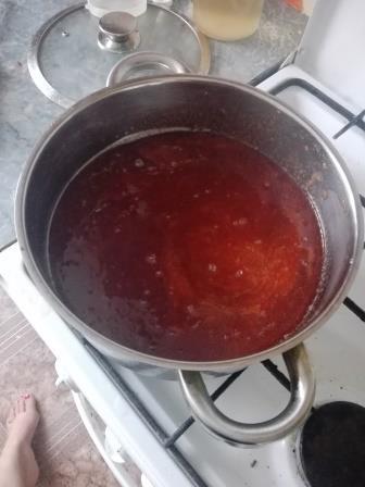 Утром ставим на плиту и доводим до кипения, оставляем до остывания. Повторяем раз 5-6 до нужной густоты.