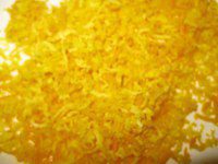 Тем временем, на мелкой терке натереть цедру апельсина. Мякоть апельсина, мелко нарезаем или выживаем сок.