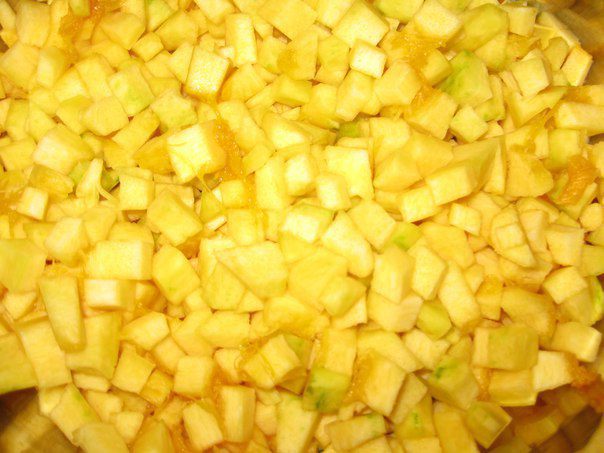 Тыкву моем, удаляем семечки (которые засушиваем), чистим и нарезаем на маленькие кубики.