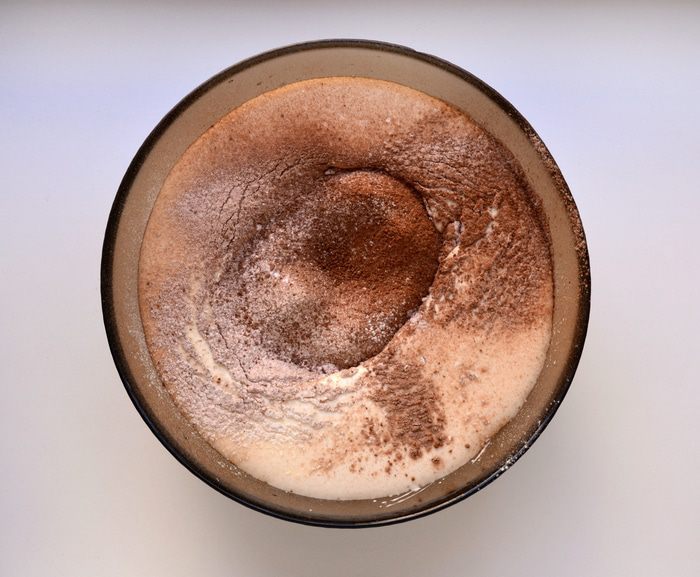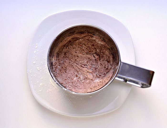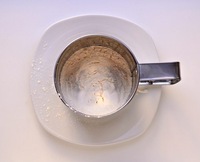 Смешать муку с разрыхлителем и ванильным порошком.