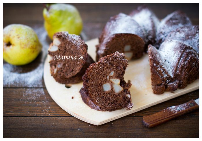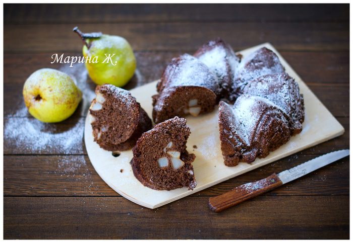Вчера купила отличные груши - спелые, сладкие. Т.к. у меня семья шокоманов, шарлотку испекла шоколадную. Очень вкусно и ароматно получилось. Сегодня дети понесли в школу то, что осталось.
