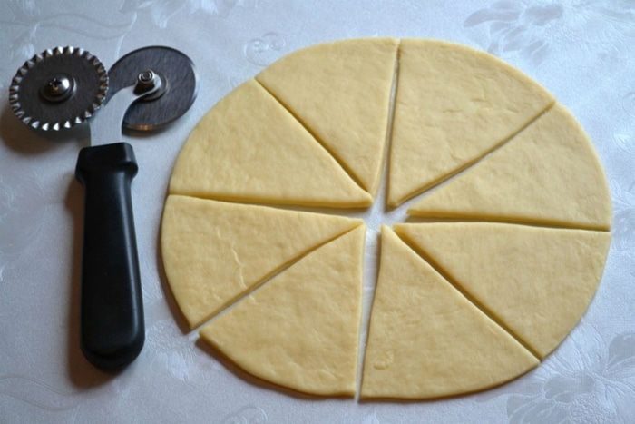 На застеленный пекарской бумагой противень выложить рогалики. Дать подойти минут 15.