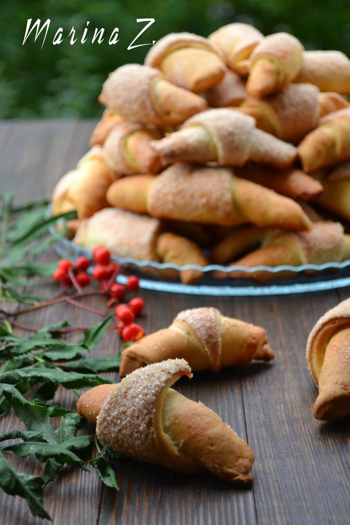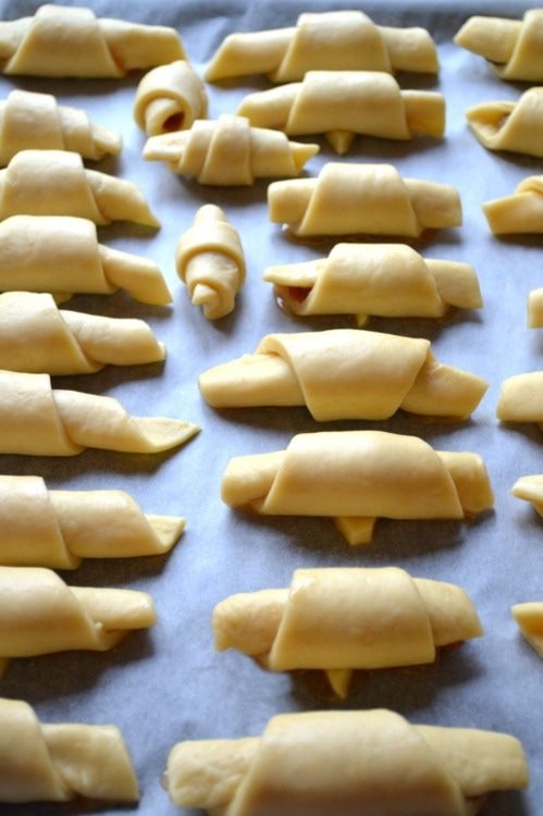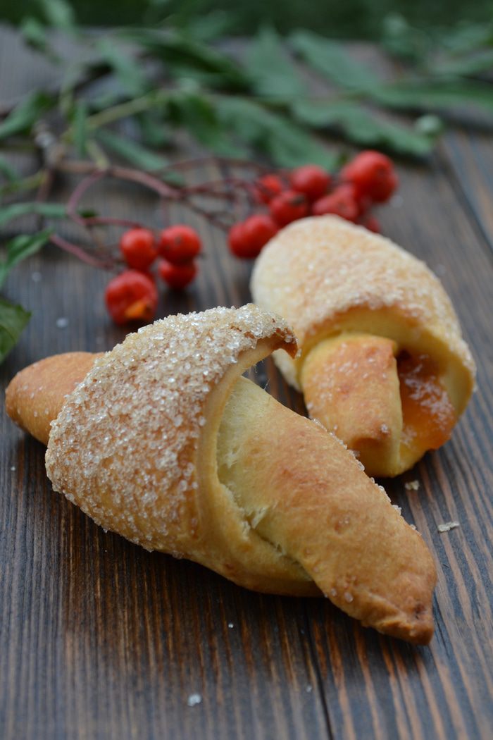 Это мой любимый рецепт рогаликов. Они получаются хрустящими, в меру рассыпчатыми, как любят дети. Начинка может быть любой. Их можно подать ребенку на завтрак и положить в качестве перекуса с собой в школу.