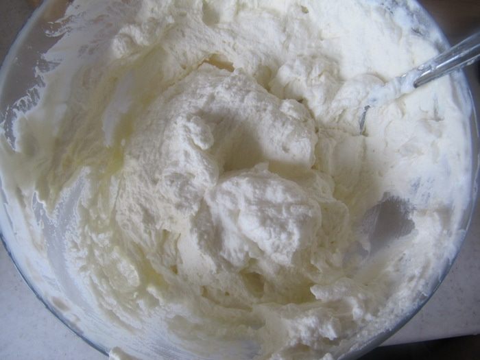 Взбитые с сахаром белки ввести в основное тесто аккуратными, но уверенными движениями снизу вверх.