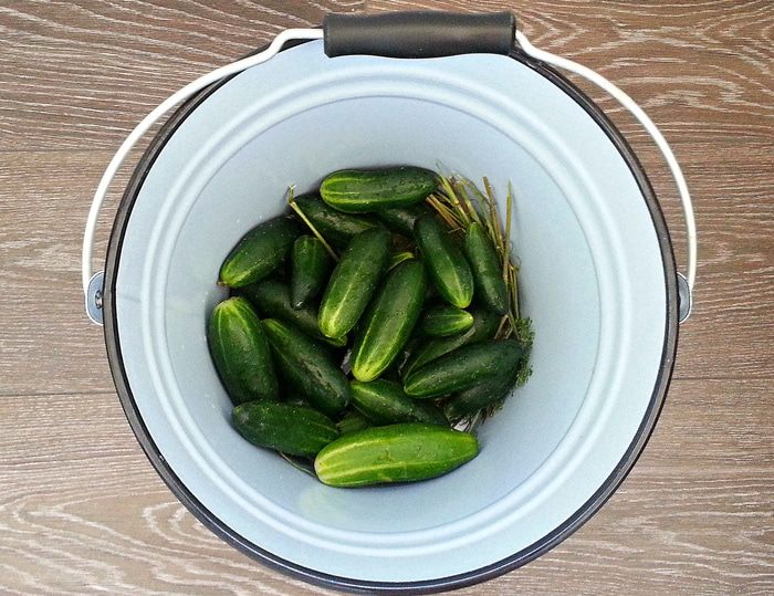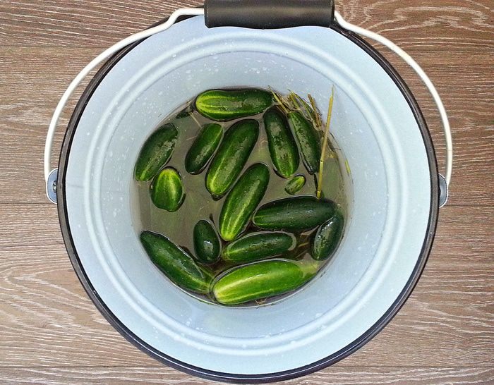 Залить рассолом: на 5 л. воды 150 г соли.