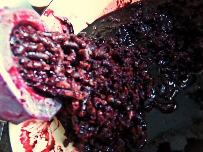 Смородину пропускаем партиями через мясорубку. Можно и блендером воспользоваться.