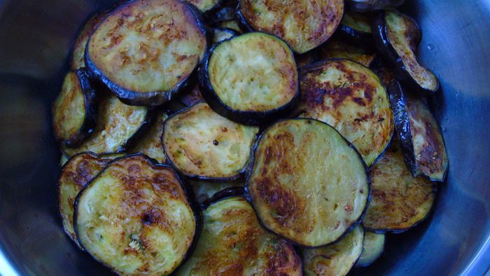 Баклажаны отжать и обжарить на растительном масле.