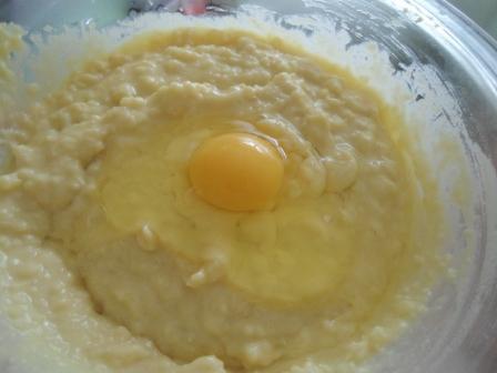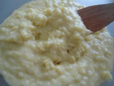 Пирог готовим заварным способом. В кастрюле смешиваем молоко, сахар, масло, соль и просеянную муку, по вкусу добавляем ванилин.Ставим все на плиту и, постоянно помешивая, завариваем тесто до густоты (у меня ушло 5 минут). Следим, чтобы не пригорело. Получилась такая густоватая кашка с комочками.