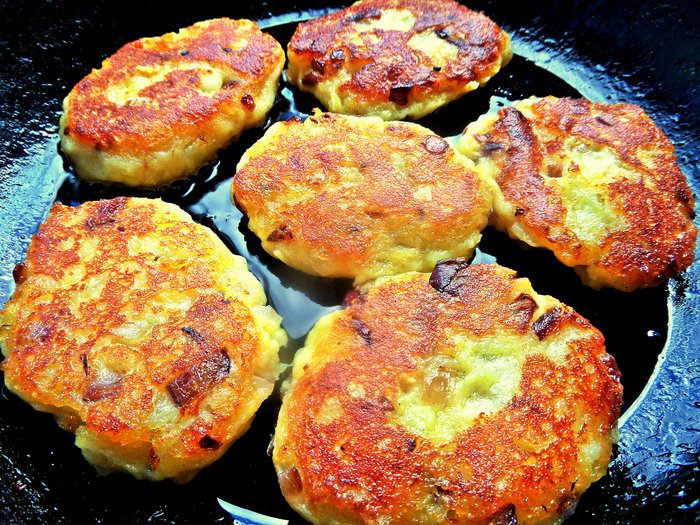 Конечно, рецепт больше для старших школьников, но и младшим можно приготовить, например, с молочными сосисками! Любителям картофельных котлет и колбасок "с дымком" такое сочетание очень понравится!