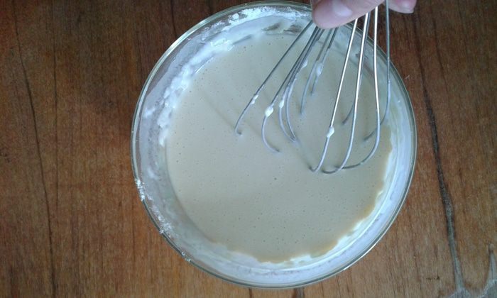 Добавляем муку и опять все тщательно взбиваем, чтобы не осталось комочков. Муки может уйти больше или меньше указанного в рецепте. Все зависит от качества муки.