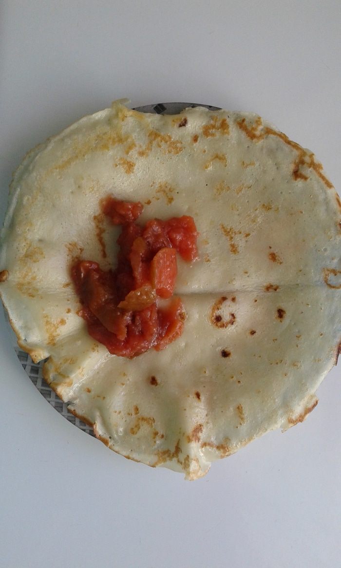 В серединку блина выкладываем варенье и заворачиваем блин конвертиком.