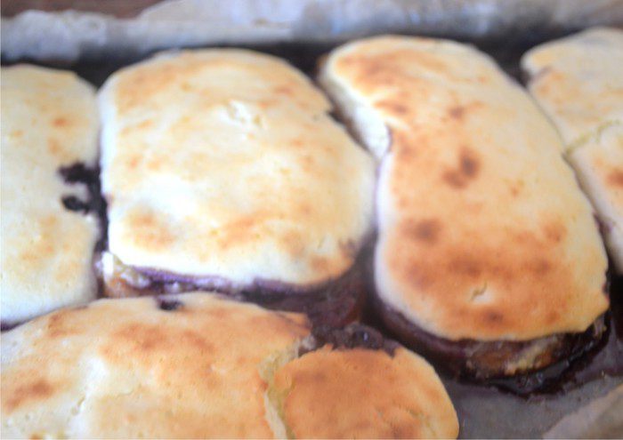 Далее на каждый кусочек выкладываем наше творожное тесто. Затем все наши "пироженки" отправляем в духовку, нагретую до 180 градусов на минут 15-20.