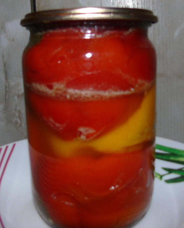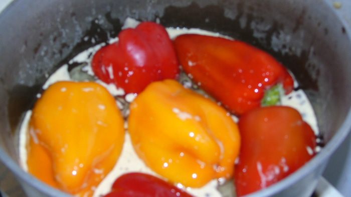 Кидаем перец и варим на медленном огне до мягкости. При желании можете перец разрезать на половину и вынуть плодоножку и уже кусочки варить. Я варю целый :)