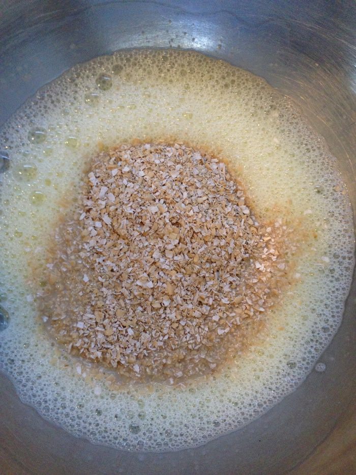 Пересыпать смесь сыпучих продуктов к отрубям. добавить туда же морковь и все смешать
