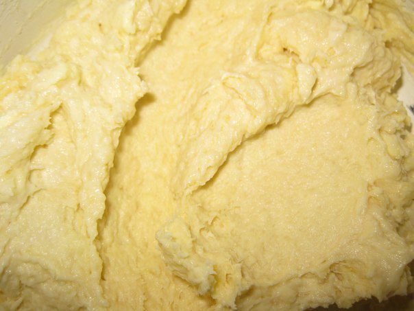 В муку добавить размягченное сливочное масло и перемешать. Добавить Яйцо, воду и соль по вкусу. Все перемешать.