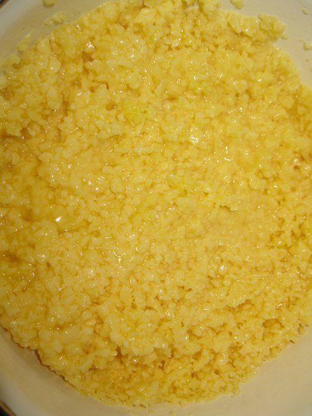 Для заливки: натереть сыр, взбить яйца и перемешать.