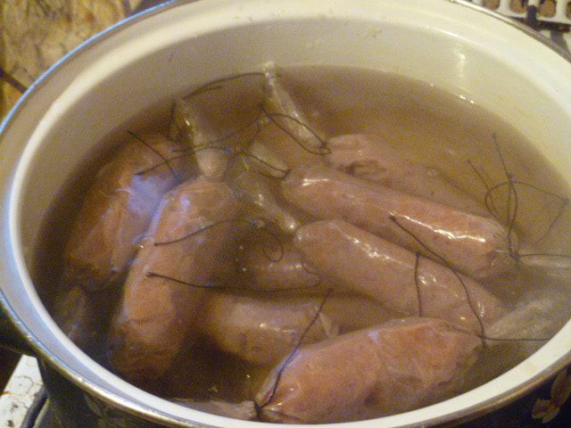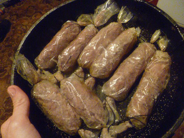 Рецепт сосисок я немного доработала под наш вкус и в результате получились очень сочные и необыкновенно вкусные гусиные сосиски.