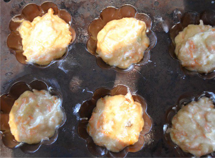 Выкладываем все в силиконовые формы (они более удобные для нежной выпечки), и выпекаем при 180 градусах 20-25 минут.