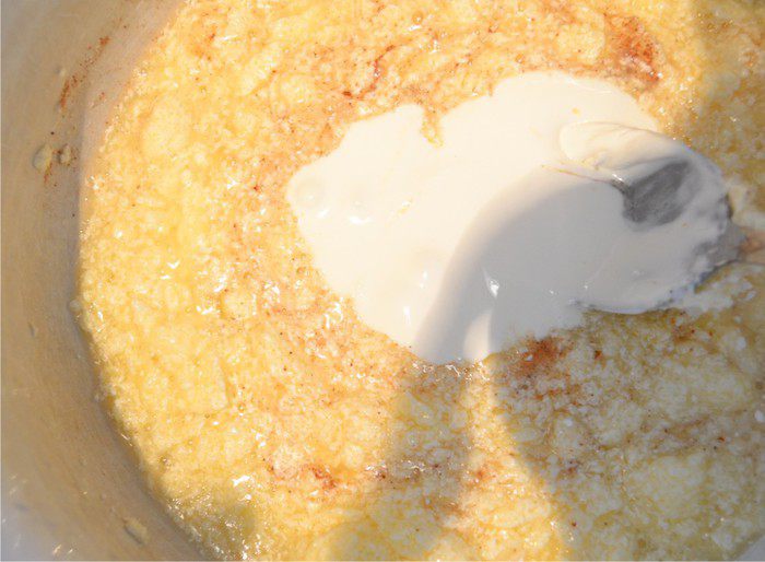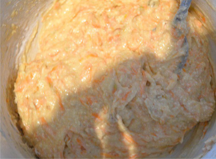 Затем добавляем морковь и йогурт. Все вымешиваем.