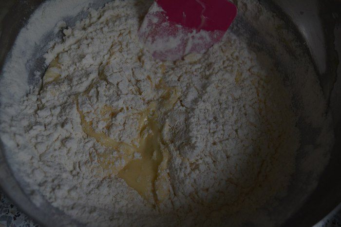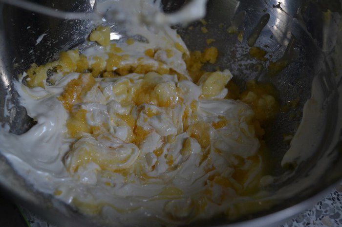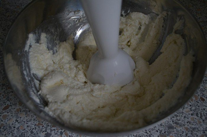 Все ингредиенты в миску + 1 с.л. муки. Взбить блендером до однородности.