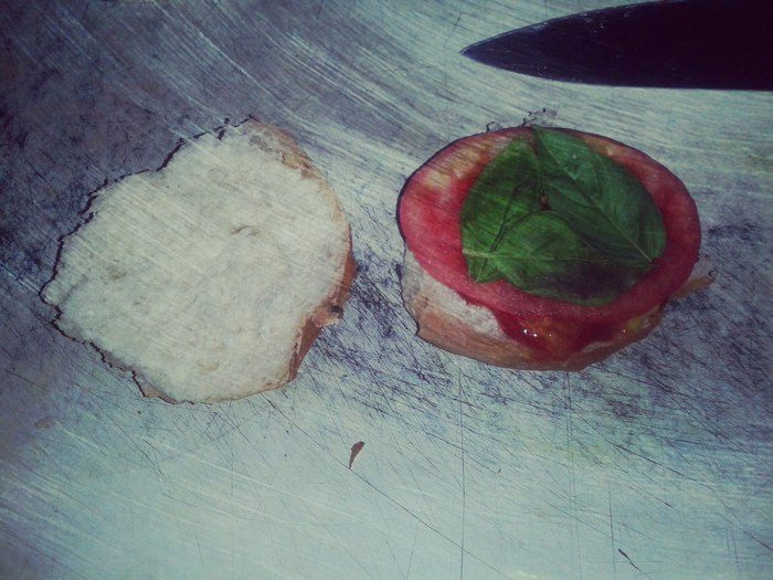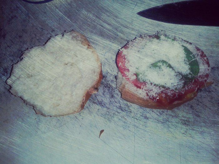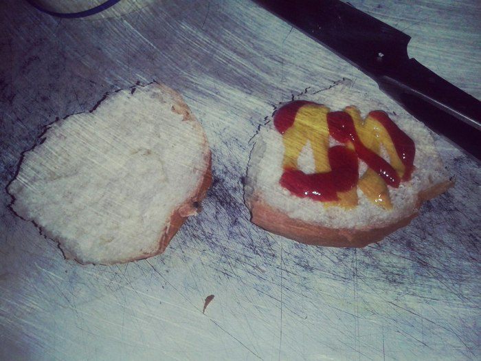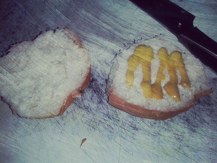 Накрыть кусочком любым твердым или плавленным сыром. Накрыть второй половинкой булки.