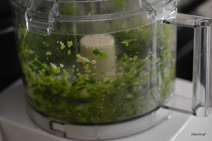 Приготовим маринад, порубим очищенный халапеньо вместе с чесноком в кухонном процессоре. Затем добавим сухие и жидкие ингредиенты.