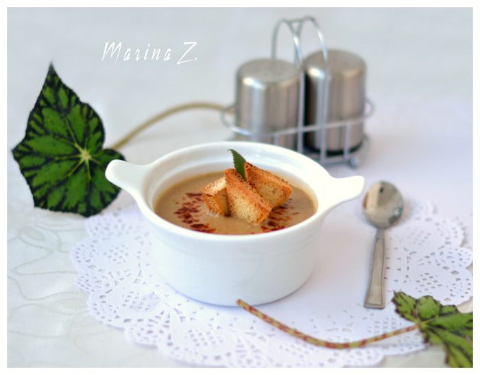 Дать готовому супу немного остыть. Вынуть лавровый лист. Пюрировать в блендере. При необходимости добавляя кипяченую воду.