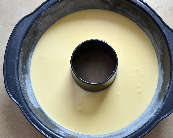 Подготовить форму для кексов с тубой в центре - хорошо смазать сливочным маслом и присыпать мукой (еще лучше использовать силиконовое кольцо, если у вас есть)