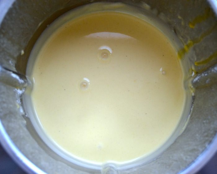 Продолжая взбивать, влить воду и растительное масло (в моем случае это арахисовое растительное масло).