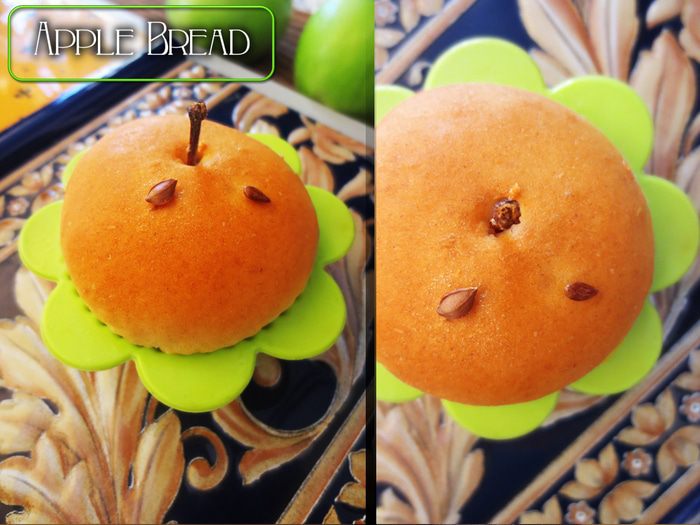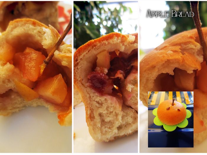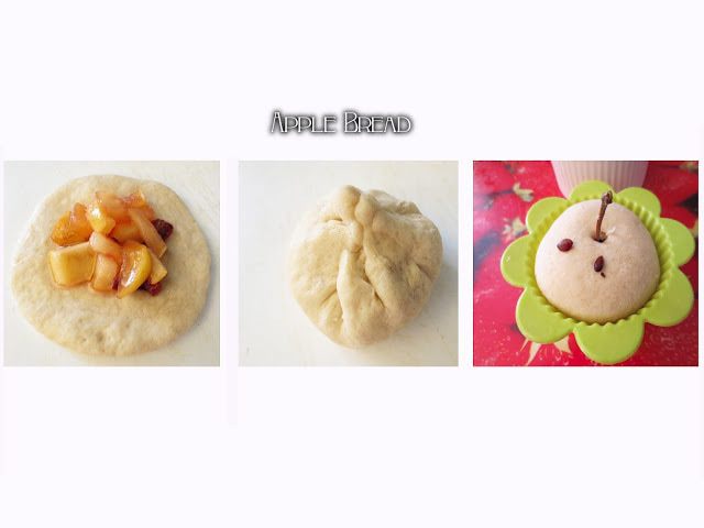 Тем временем приготовим начинку. Для этого Для этого яблоки очистить от сердцевины и порезать на маленькие кусочки. Плодоножки не выкидываем, они пойдут на оформление. Сливы также освободить от косточек и порезать на небольшие кусочки. В маленькую кастрюлю, положить фрукты, высыпать сахар, добавить сок лимона, перемешать и варить на маленьком огне в течении 10 минут. Затем добавить корицу и перемешать. Начинка готова