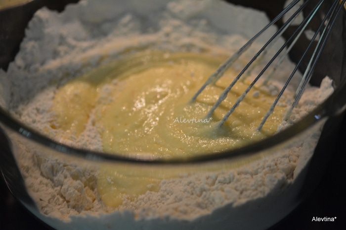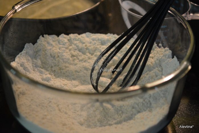 Смешать муку и разрыхлитель, сахар.