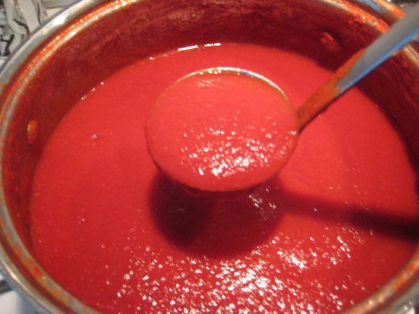Варить соус 3-4 часа в зависимости от водянистости помидор. Соус нужно хорошо уварить.