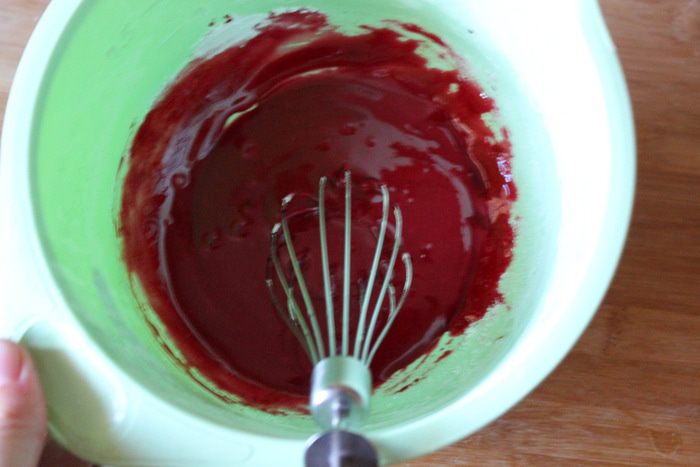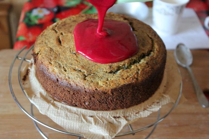 Приготовьте помадку. Смешать сахарную пудру и сок смородины, хорошо растереть с помощью венчика.