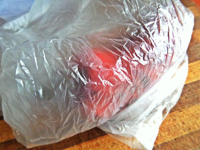 Когда обуглится вокруг, выключаем огонь, достаём обычный пищевой пакетик...