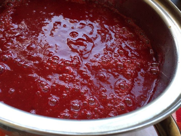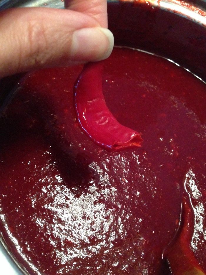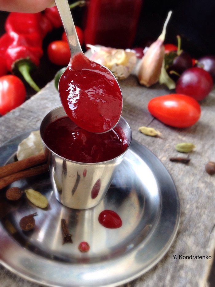 По истечению времени, соус следует процедить через сито, перелить обратно в кастрюлю и вскипятить, постоянно помешивая, чтобы не пригорел. Потом разлить в стерилизованные банки и закрыть хорошо крышкой. Банки перевернуть, укутать и оставить до полного остывания.