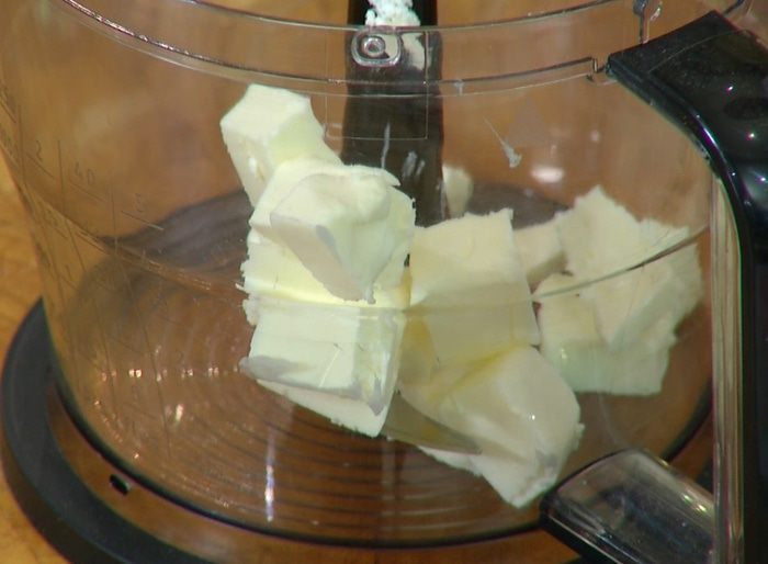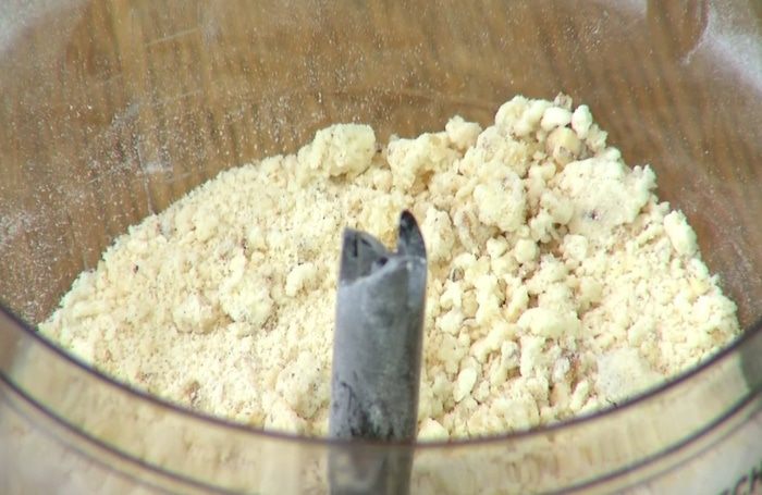 Приготовить тесто: в чаше блендера соединить муку, сливочное масло, грецкие орехи, сахар, корицу, посолить и взбивать все на высокой скорости до получения крошки.