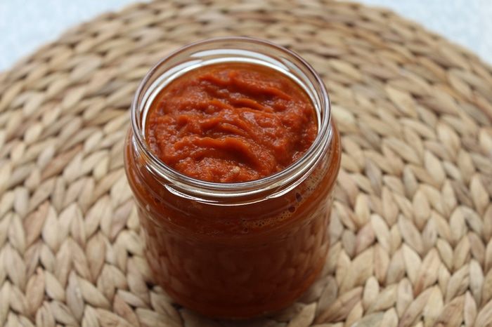 Выложить в стерилизованные баночки и закрыть стерилизованными крышками. Остудить, поставить в холодильник. Паста хорошо хранится, ее можно добавлять в разнообразные блюда.