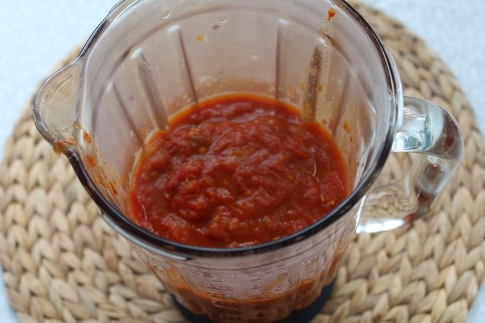 Готовый соус необходимо пюрировать блендером или протереть через сито.