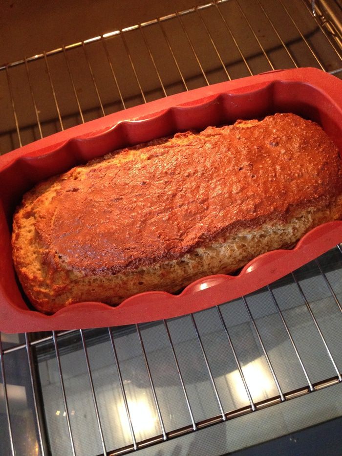 Готовность проверяем деревянной шпажкой. Приятного аппетита! На фото испеченный хлеб в силиконовой форме.
