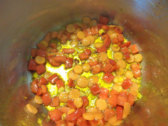 Добавить его в кастрюлю к морковке и чесноку.