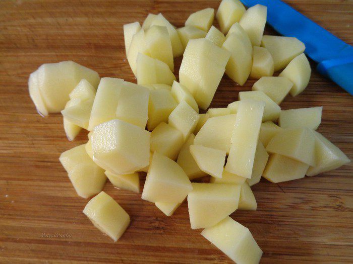 Картошку почистить и порезать кубиком.